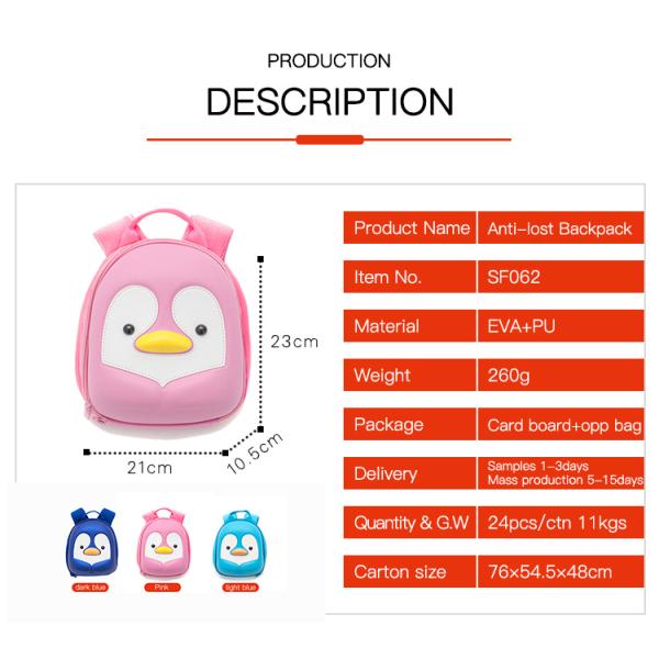 Anti Lost 3D Kids Penguin Backpack Customizable EVA Kids Hardshell Backpack Images |