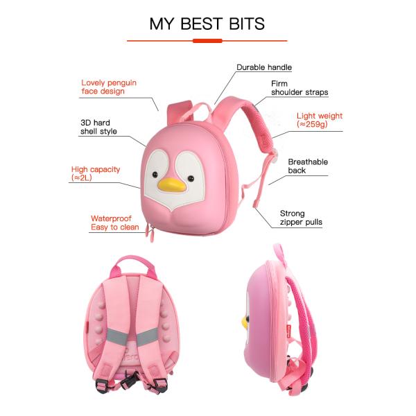 Supercute 3D Penguin-Print Customizable EVA Hard Shell School Backpack For Kids